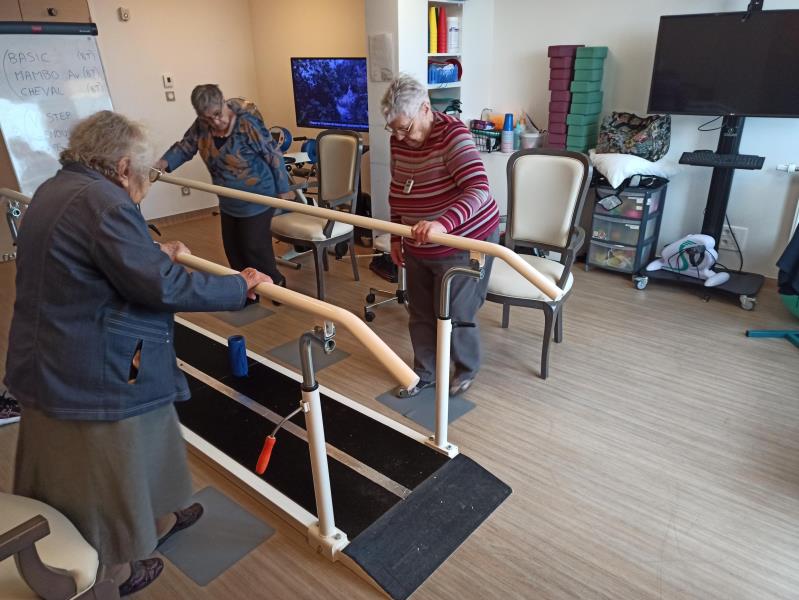 En step ce matin avec Marine (EAPA), les résidentes présentes ont réalisé pour la première fois l'enchainement en entier (6 pas différents). La bonne humeur était au rendez-vous malgré la difficulté de l'exercice.