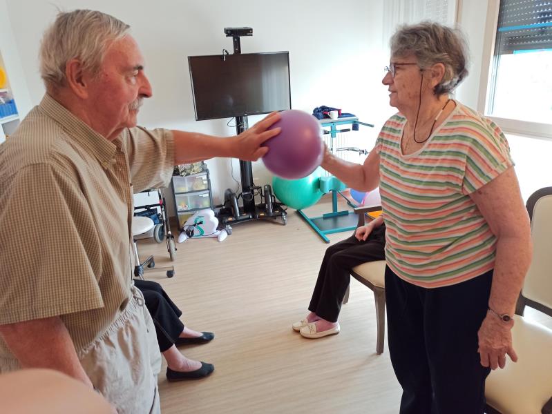 Résidence Marius Lacrouze > Actualités > Atelier équilibre Atelier équilibre Publiée le 21/08/2025 Ce matin c'était atelier équilibre avec Marine. Les résidents ont pu entrainer leur équilibre statique à l'aide de situations individuelles ou en binômes.