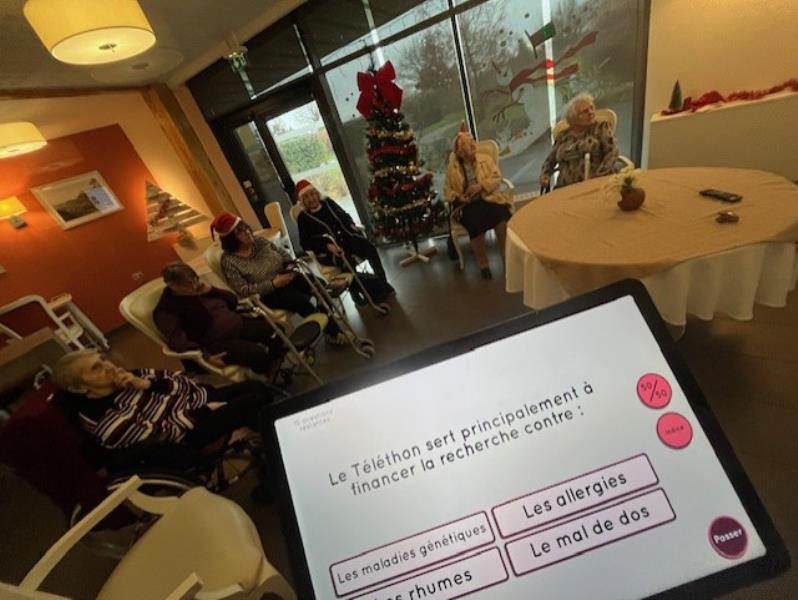 En cette journée placée sous la signe de la solidarité, les résidents ont joyeusement participé à une activité dédiée au Téléthon: ils ont répondu avec enthousiasme à un jeu de questions dont les bonnes réponses ont permis de contribuer à cette belle cause, et , dans l'esprit des fêtes qui approchent, ils ont fièrement revêtu leurs bonnets de Noël, créant ainsi un moment convivial, fédérateur et empreint de chaleur humaine.