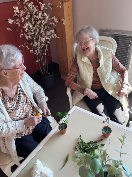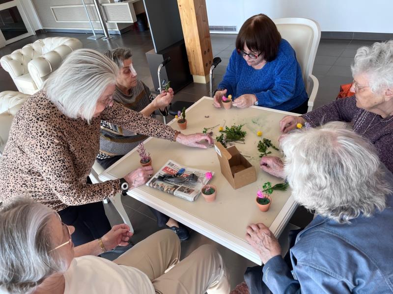 À l’occasion de l’arrivée du printemps cet après-midi, les résidents ont confectionné avec plaisir de petits pots de fleurs séchées, un atelier créatif qui a apporté couleur, douceur et une belle ambiance printanière au sein de la résidence