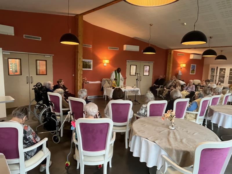 Aujourd'hui , la messe a été célébrée au sein de la résidence. Ce fut un moment de recueillement et de partage très apprécié par les résidents, qui ont eu le plaisir de se rassembler pour prier ensemble dans une atmosphère chaleureuse et apaisante.