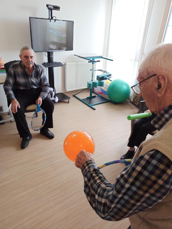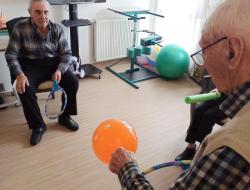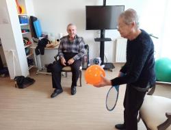 Les résidents présents à l'atelier équilibre de ce jeudi matin ont réalisé une séance autour des jeux de raquette. Un bon moyen de travailler la posture et l'équilibre tout en s'amusant.
