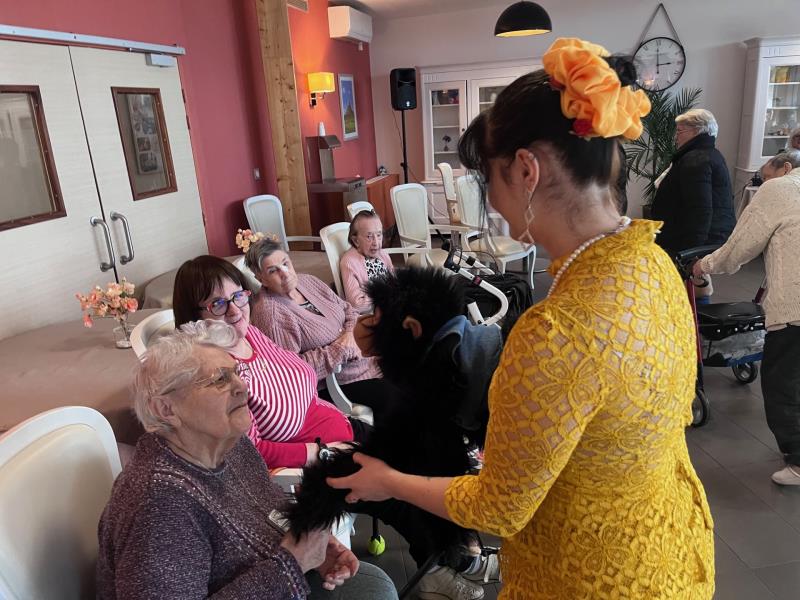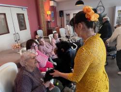 A l’occasion de la fête des anniversaires organisée au sein de la résidence, les résidents et leurs familles ont eu le plaisir d’assister à une animation musicale chaleureuse animée par la chanteuse lyrique Alycia Steel, qui a proposé un répertoire francophone à la fois dynamique et accessible, favorisant la participation, les souvenirs partagés et une ambiance conviviale particulièrement appréciée par l’ensemble des participants.