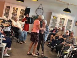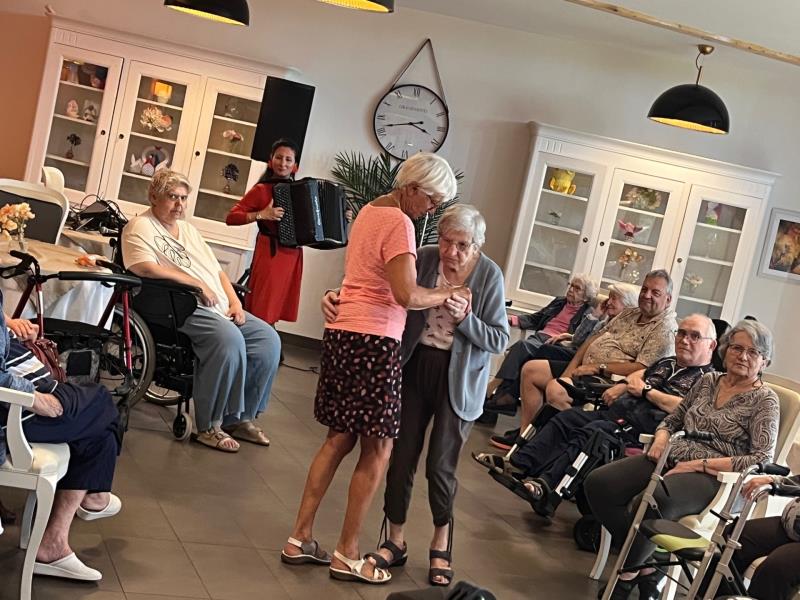 La fête des anniversaires s'est déroulée dans une ambiance chaleureuse et conviviale , grâce à la présence de Nathalie Bernat qui, accompagnée de son accordéon, a animé l'après-midi avec entrain et bonne humeur, offrant aux résidents des moments de joie et de partage qui ont été très appréciés et ont contribué à rendre cette célébration particulièrement réussie.