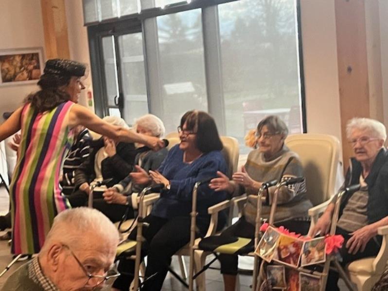 Cet après-midi, nous avons célébré les anniversaires du mois de novembre lors d'un moment convivial et musical animé par Anne Valverde et son spectacle Pétula. Les résidents ont pleinement apprécié cette parenthèse festive, rythmée tout en profitant d'un délicieux gâteau préparé pour l'occasion. Ce temps chaleureux a favorisé le lien social et la participation de chacun.