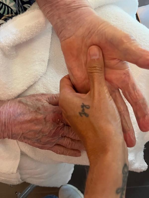Nous avons proposé un moment de détente aux résidents à travers des massages des mains et des jambes. Cette activité a été très appréciée et leur a procuré un véritable bien-être, en favorisant la relaxation, le relâchement des tensions et une sensation de confort et de douceur.