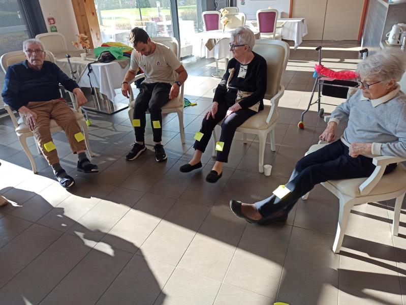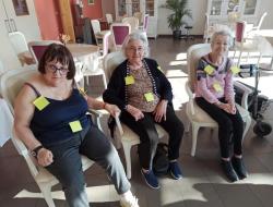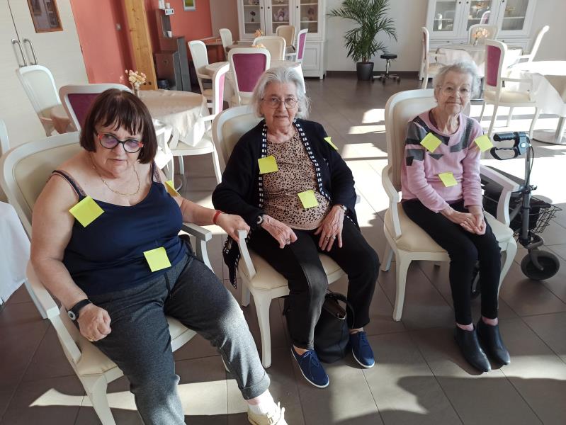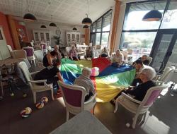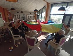Après midi sportive en Ludi'gym avec les EAPA dans la bonne humeur avec l'activité parachute. En fin de séance un défi a été lancé aux résidents: décrocher ses post-it sans utiliser ses mains.