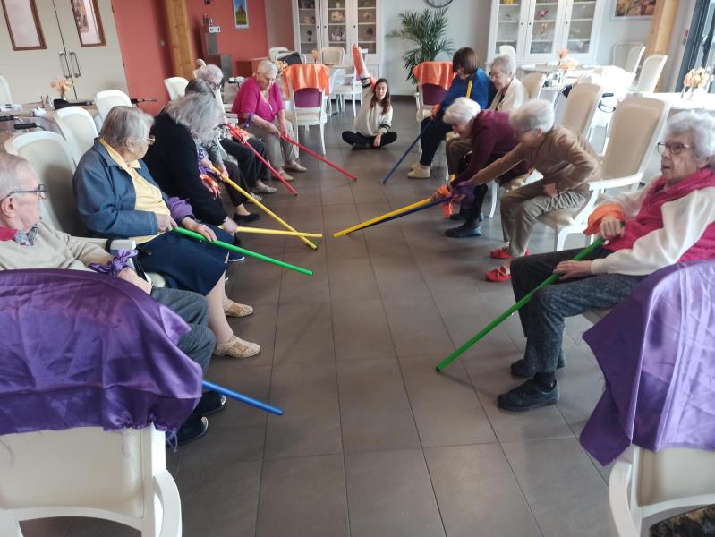 Résidence Marius Lacrouze > Actualités > LUDI'GYM LUDI'GYM Publiée le 23/10/2025 Lors de la séance de Ludi'Gym de cet après midi, les résidents se sont affrontés sur un match de hockey qui s'est soldé par une victoire des violets 20 à 18.
