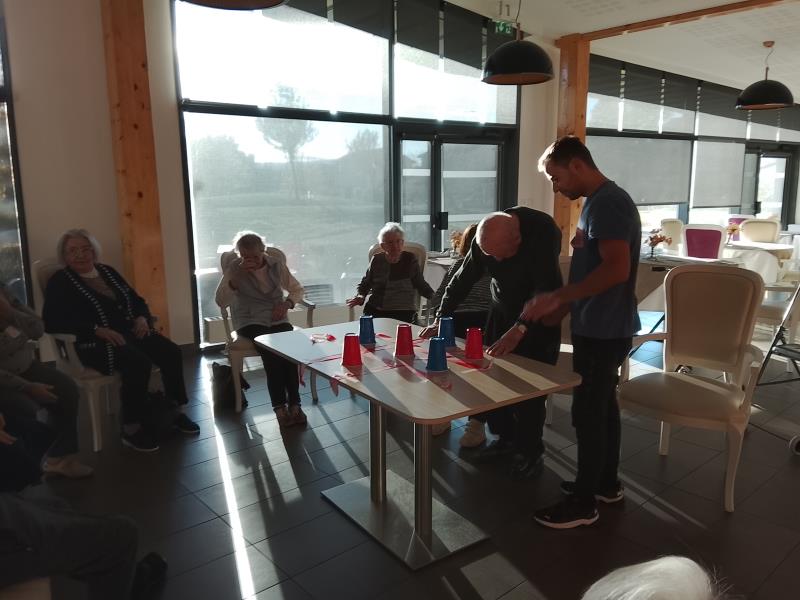 Ce jeudi, avec un beau soleil d'automne, nos résidents ont participé à l’activité Ludigym, un moment alliant mouvement, et bonne humeur. Au programme : un jeu collectif où chacun a pu mettre à profit son sens de l’entraide et du rire. Dans une ambiance conviviale, les participants ont pris plaisir à bouger ensemble, à s’encourager et à partager un agréable moment en plein air. Tous ont apprécié cette séance dynamique qui allie activité physique douce et lien social — un vrai rendez-vous de bien-être attendu chaque semaine !