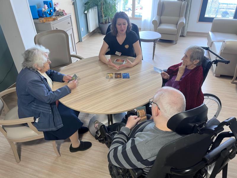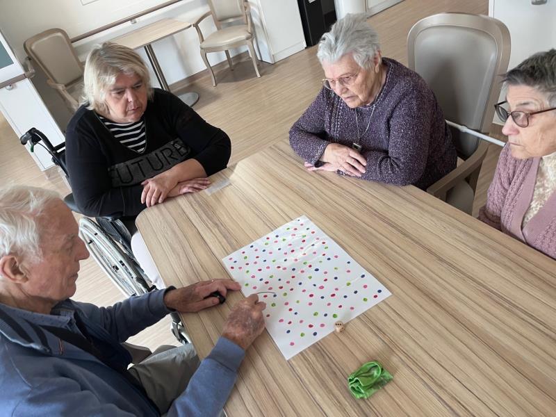 Ce matin, les résidents se sont retrouvés dans une ambiance chaleureuse autour de différents jeux de société, partageant rires, échanges et souvenirs tout en stimulant leur mémoire, leur concentration et leur motricité fine, ce qui a favorisé la convivialité, renforcé les liens entre eux et offert un moment de plaisir simple et apaisant apprécié de tousÂ