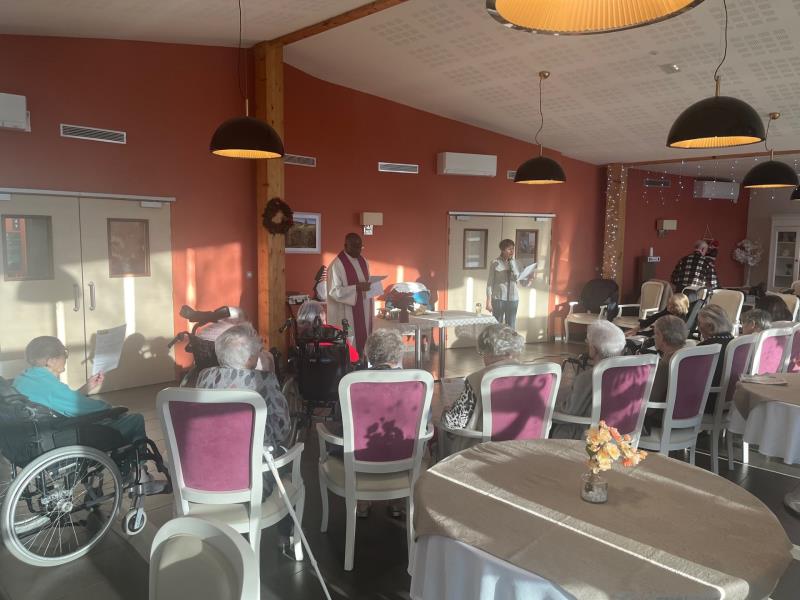 La messe a été célébrée aujourd'hui au sein de la résidence, un moment empreint de douceur et de recueillement qui a offert à nos résidents un véritable réconfort spirituel ainsi qu'une belle occasion de partager ensemble un temps apaisant et profondément apprécié.