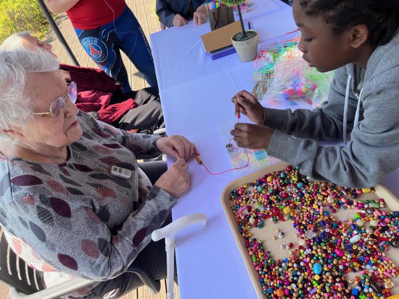 Un bel après-midi de partage intergénérationnel où jeunes et résidents ont créé ensemble colliers et bracelets, dans une ambiance conviviale et pleine de sourires