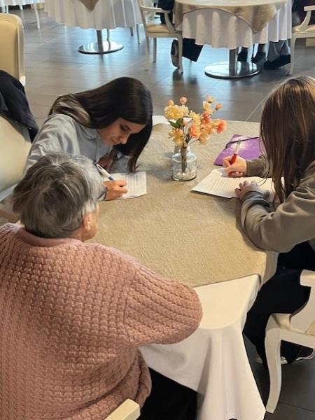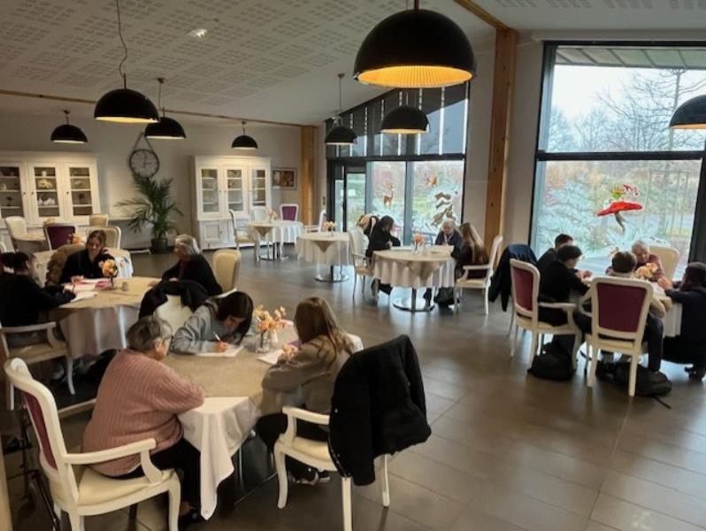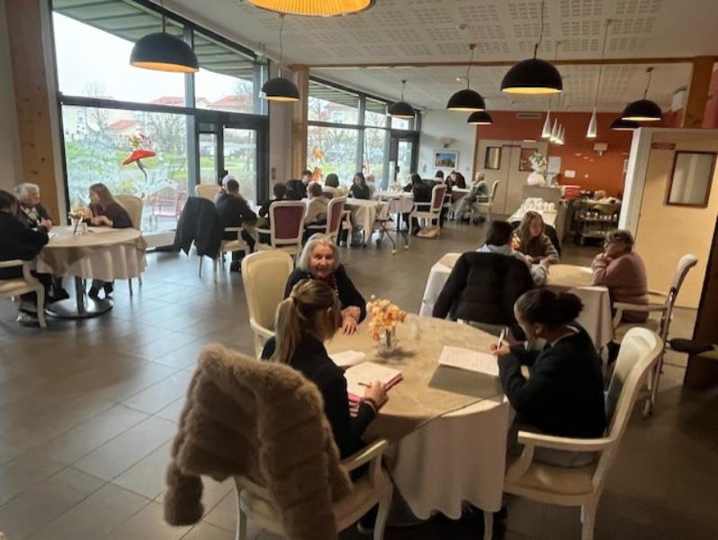 Cet après-midi, une classe du lycée Dumaine est venue à la rencontre des résidents dans le cadre d’un projet d’histoire-géographie intitulé « Racines et mémoire », favorisant un riche temps d’échange autour du quotidien d’aujourd’hui et de celui vécu par les résidents durant leur jeunesse. Cette rencontre intergénérationnelle, empreinte d’écoute, de curiosité et d’émotion, a permis le partage de souvenirs, d’expériences et de valeurs, créant de beaux moments de complicité et laissant à chacun un souvenir très positif.